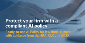 Legal Eye has developed a ready-to-use AI Policy for law firms, aligned with guidance from the SRA, CLC and CILEx. Now updated in line with the latest AI and Technology Principles from the CLC.